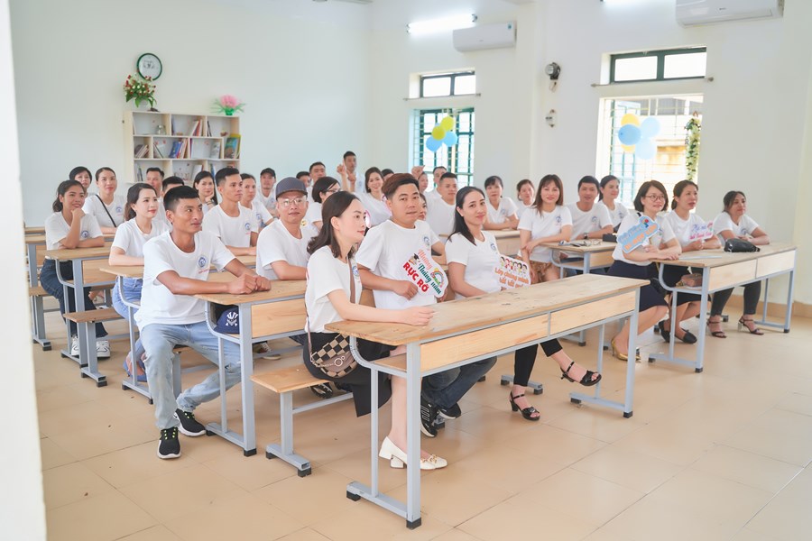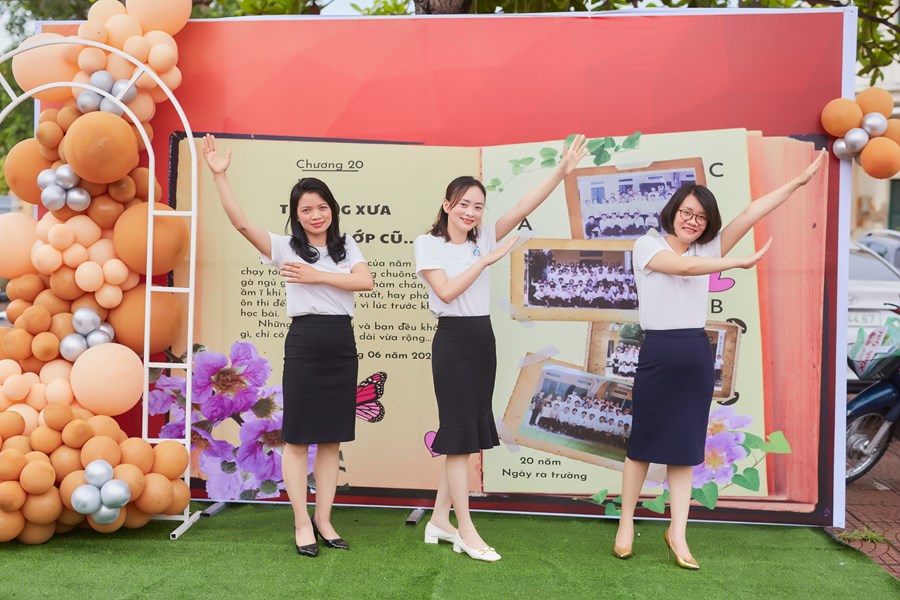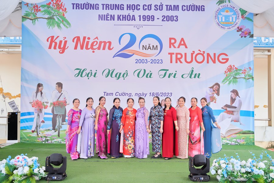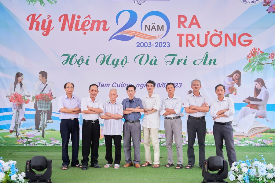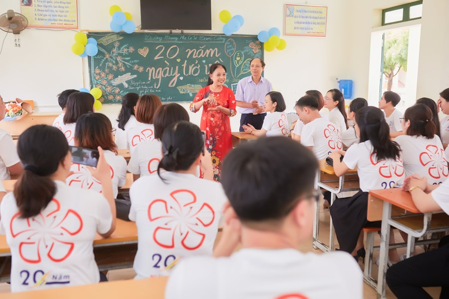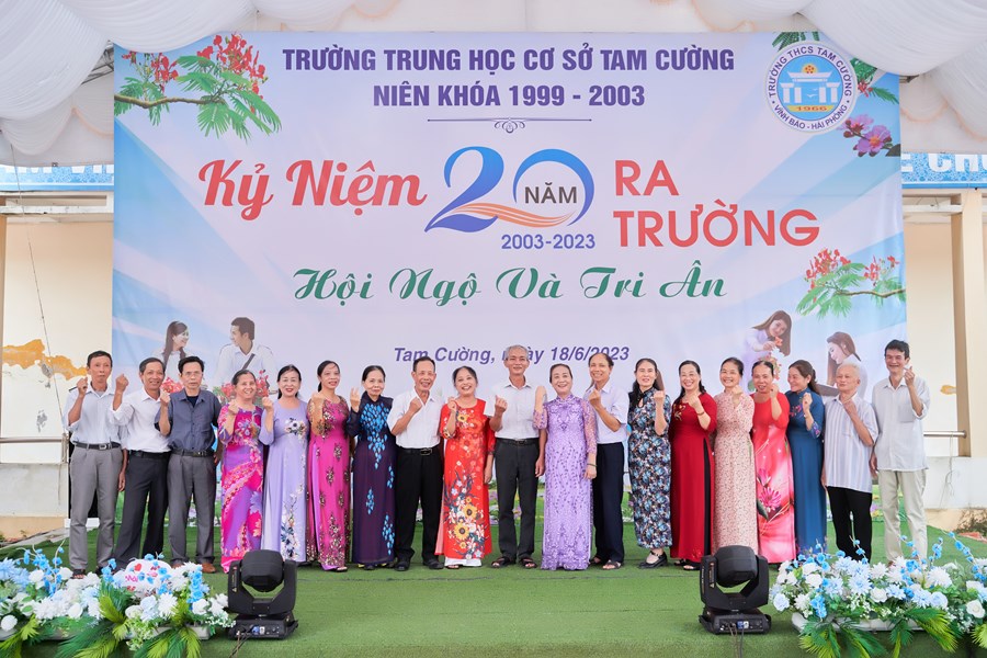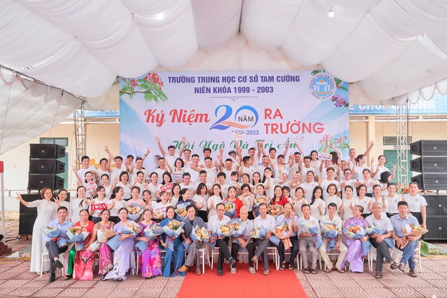 Trên sân trường hay đến với khu phòng học, không phải là sự tĩnh lặng, vắng vẻ của những ngày nghỉ hè và cũng không phải là sự nóng nực, oi nồng vốn có của tiết trời mùa hạ. Thay vào đó là không khí ngập tràn tiếng nói cười trong hàn huyên chuyện cũ, trong những lời thăm hỏi động viên, trong những cái bắt tay và có cả những cái ôm thật chặt mang theo sự xúc động chân thành của các cô cậu học trò dành cho các thầy cô đáng kính của mình khi bước trở về miền ký ức học trò 20 năm về trước. Đó là mảng chính trong bức tranh đẹp về Ngày Hội khóa kỷ niệm 20 năm ra trường do cựu học sinh khóa 1999-2003 tổ chức.