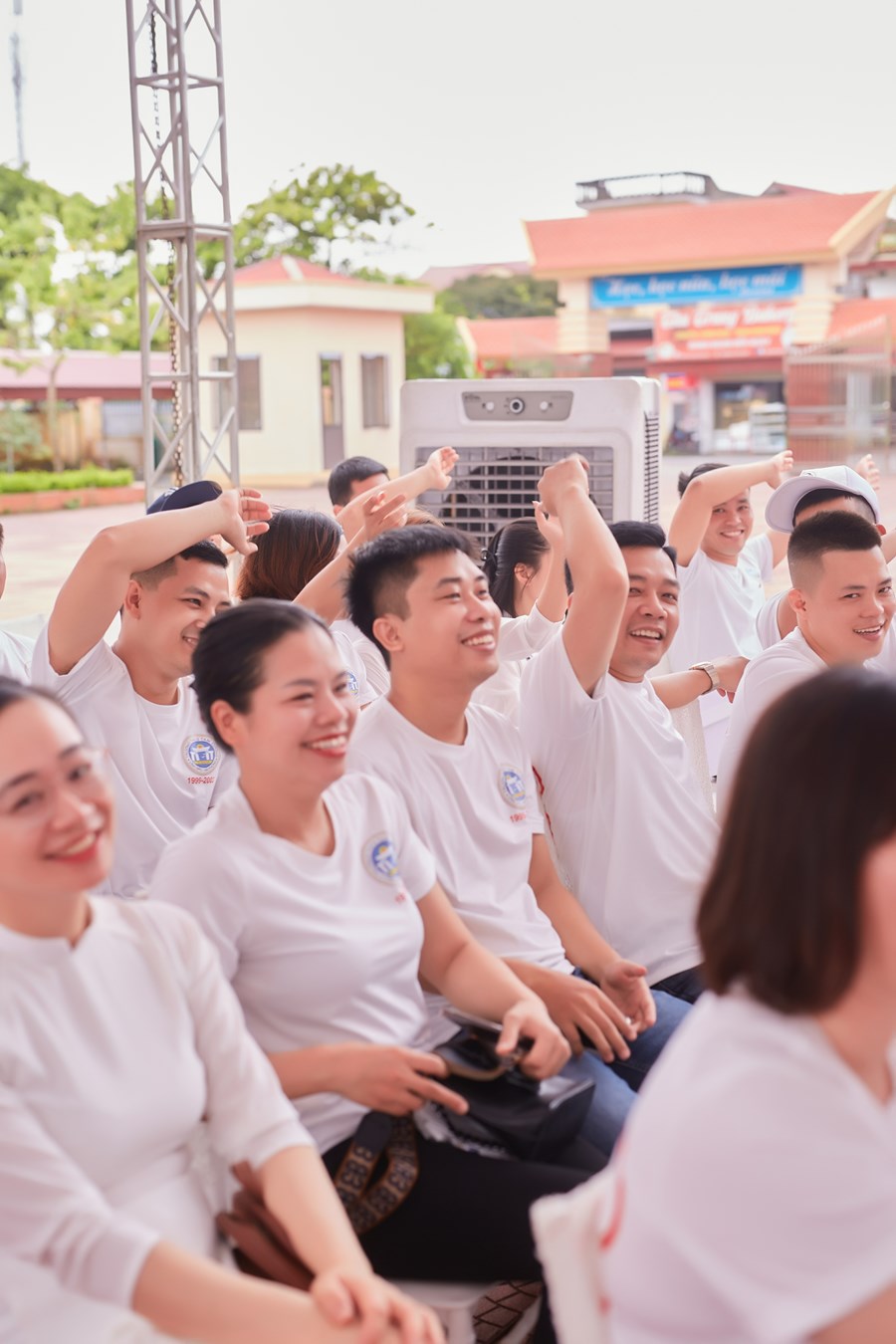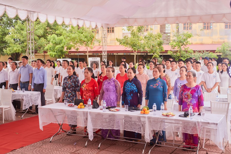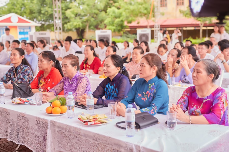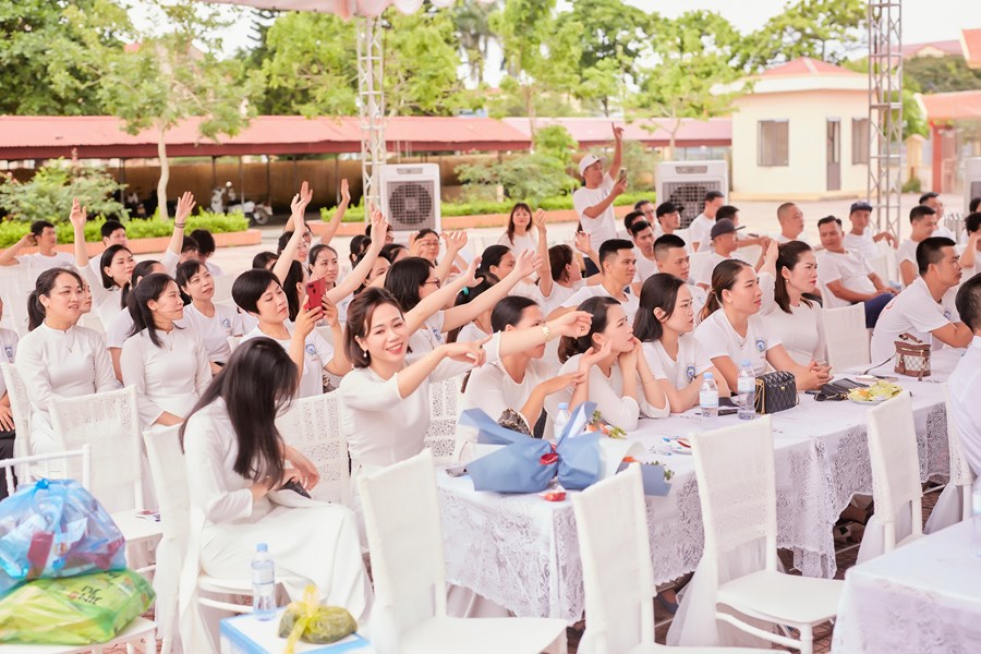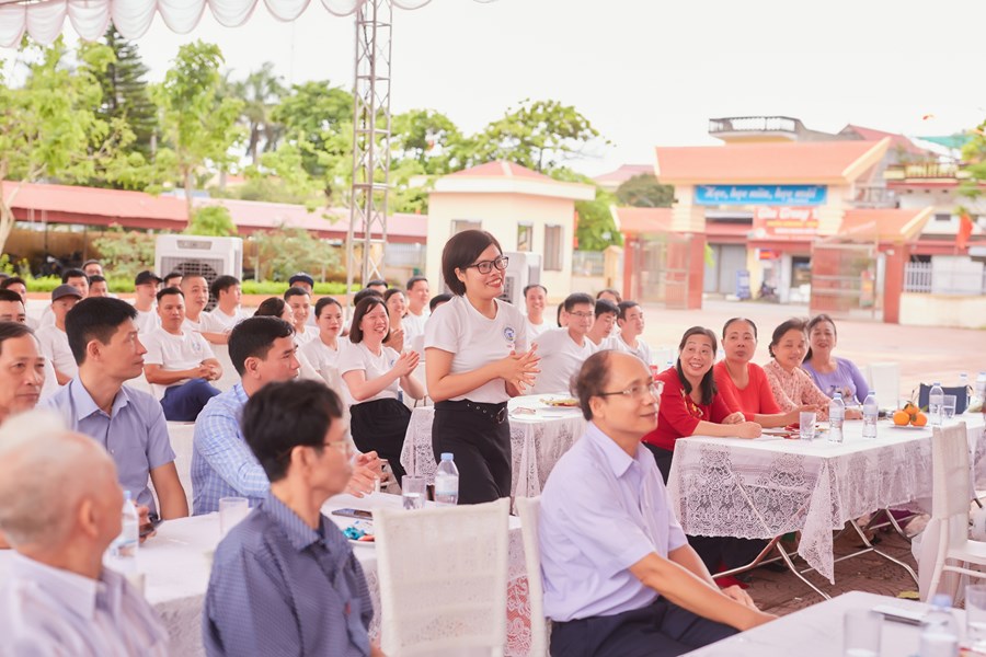 Trên sân trường hay đến với khu phòng học, không phải là sự tĩnh lặng, vắng vẻ của những ngày nghỉ hè và cũng không phải là sự nóng nực, oi nồng vốn có của tiết trời mùa hạ. Thay vào đó là không khí ngập tràn tiếng nói cười trong hàn huyên chuyện cũ, trong những lời thăm hỏi động viên, trong những cái bắt tay và có cả những cái ôm thật chặt mang theo sự xúc động chân thành của các cô cậu học trò dành cho các thầy cô đáng kính của mình khi bước trở về miền ký ức học trò 20 năm về trước. Đó là mảng chính trong bức tranh đẹp về Ngày Hội khóa kỷ niệm 20 năm ra trường do cựu học sinh khóa 1999-2003 tổ chức.