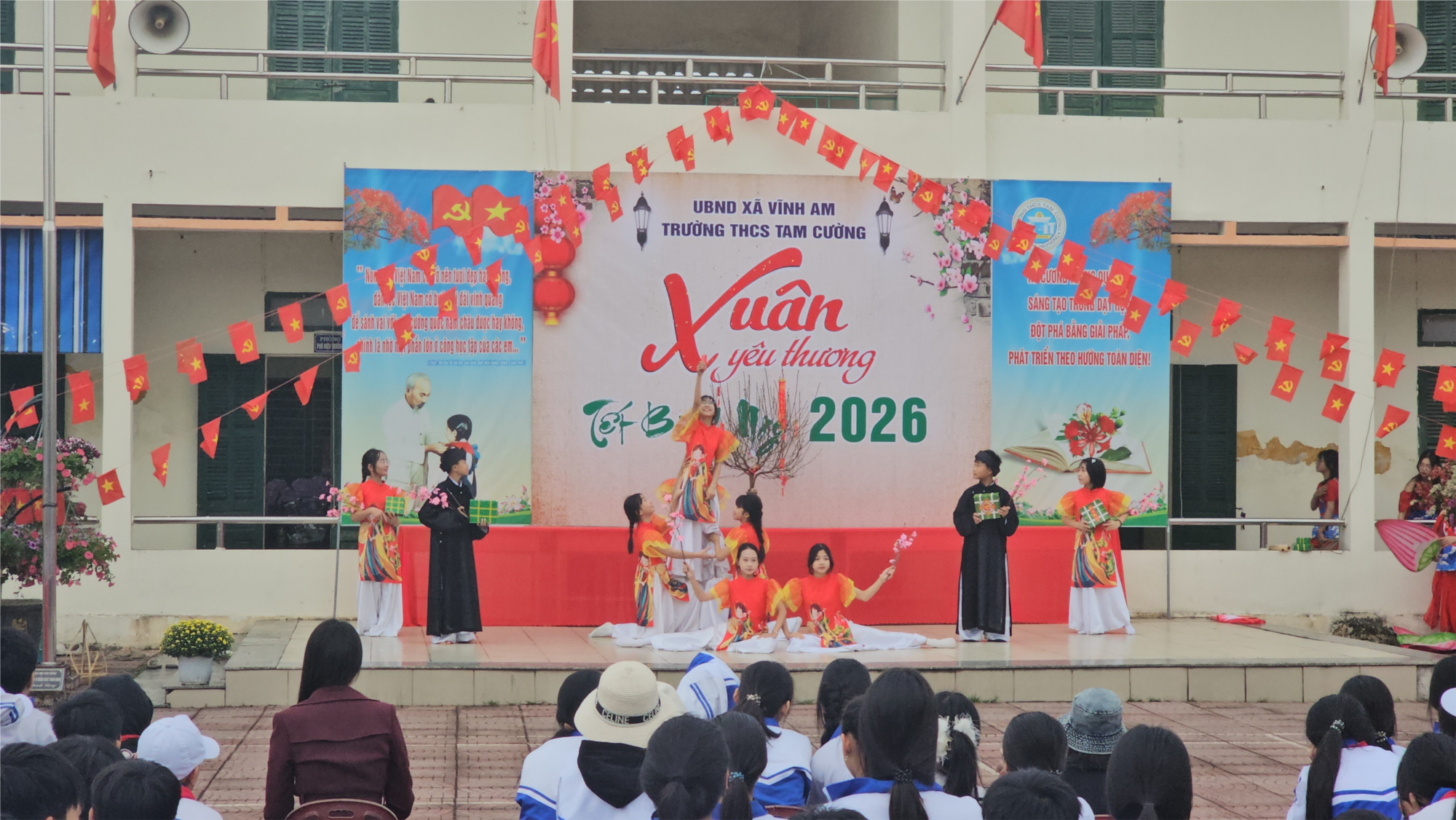 Thực hiện kế hoạch tổ chức đón Tết Nguyên đán Bính Ngọ năm 2026, sáng ngày 13/02/2026, Trường THCS Tam Cường đã tổ chức chương trình “Xuân yêu thương – Tết Bính Ngọ 2026” trong không khí vui tươi, đầm ấm và đậm đà bản sắc dân tộc. Hoạt động nhằm tạo khí thế phấn khởi trước kỳ nghỉ Tết, đồng thời giáo dục học sinh về truyền thống văn hóa, tinh thần đoàn kết và lòng nhân ái.